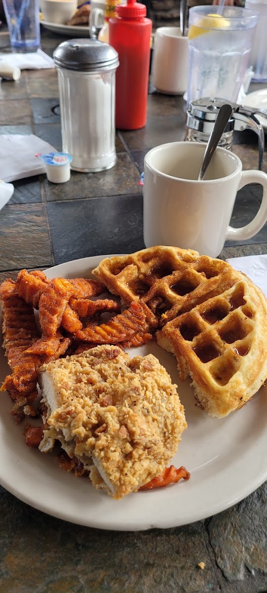 The atmosphere carries a quiet, unpretentious energy—where locals exchange greetings over coffee and visitors quickly find their rhythm in the friendly buzz. The menu echoes this spirit, offering hearty, thoughtfully prepared dishes that never try too hard but always satisfy. From the way the sweet potato fries unexpectedly brighten up a chicken and waffles pairing, to the rich, comforting embrace of biscuits and gravy, each plate tells a story of familiar flavors with a little twist.