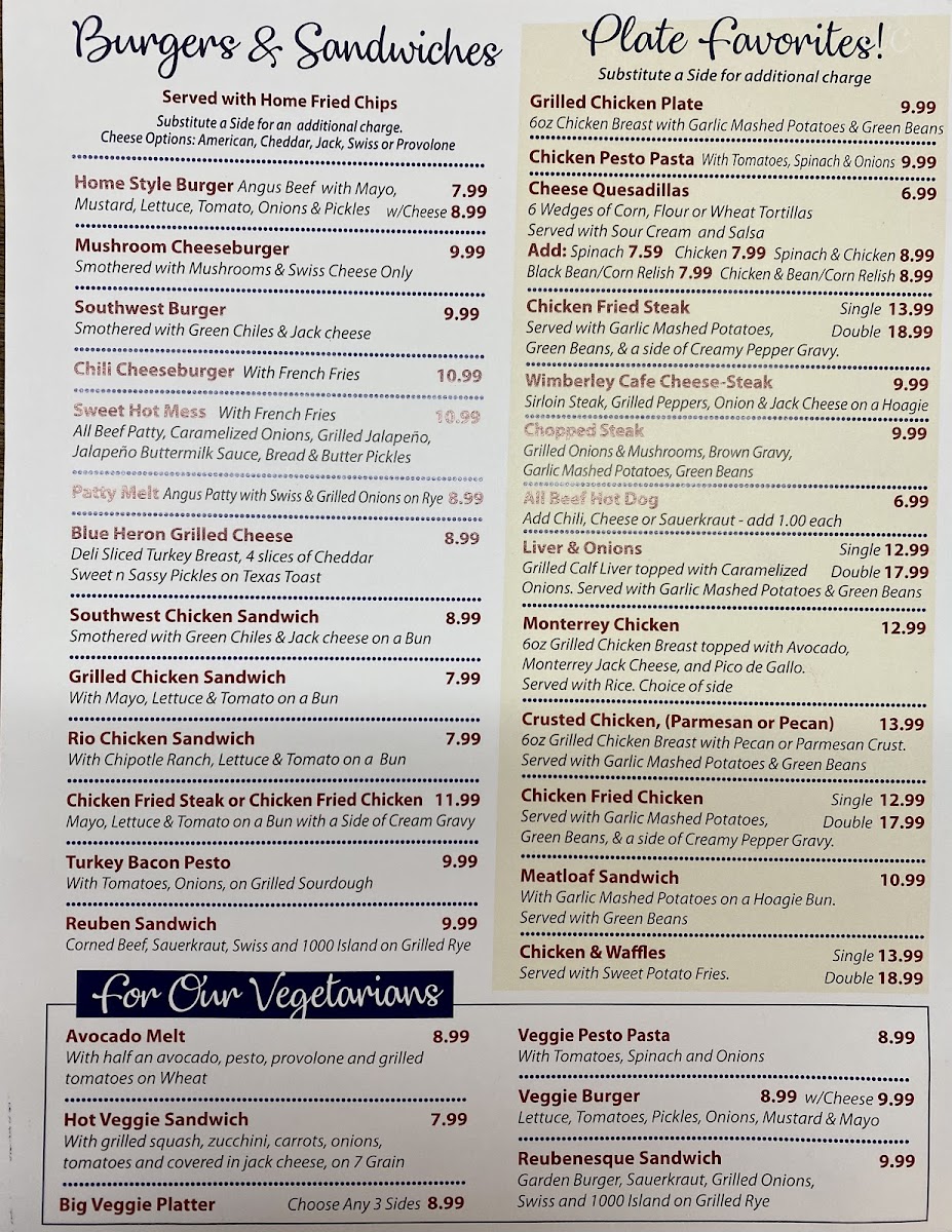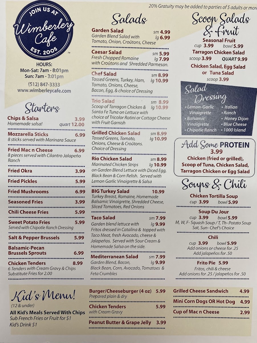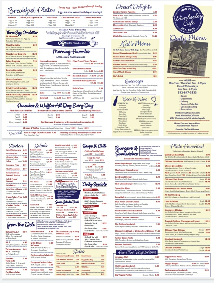 Wimberley Cafe Menu